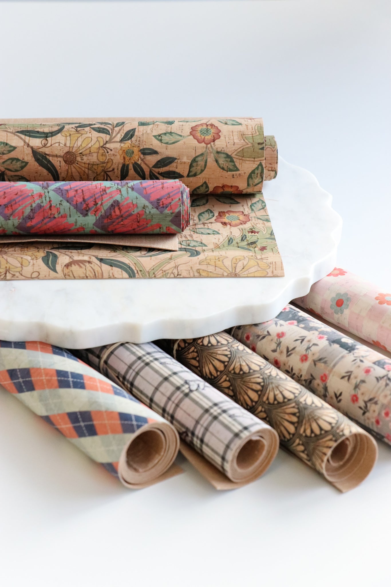 This vegan material is a great alternative to leather or cork fabric due to its price point. Sallie Tomato Faux Leather is soft, pliable, and comes in three textures: Weave, Pebble, and Legacy.