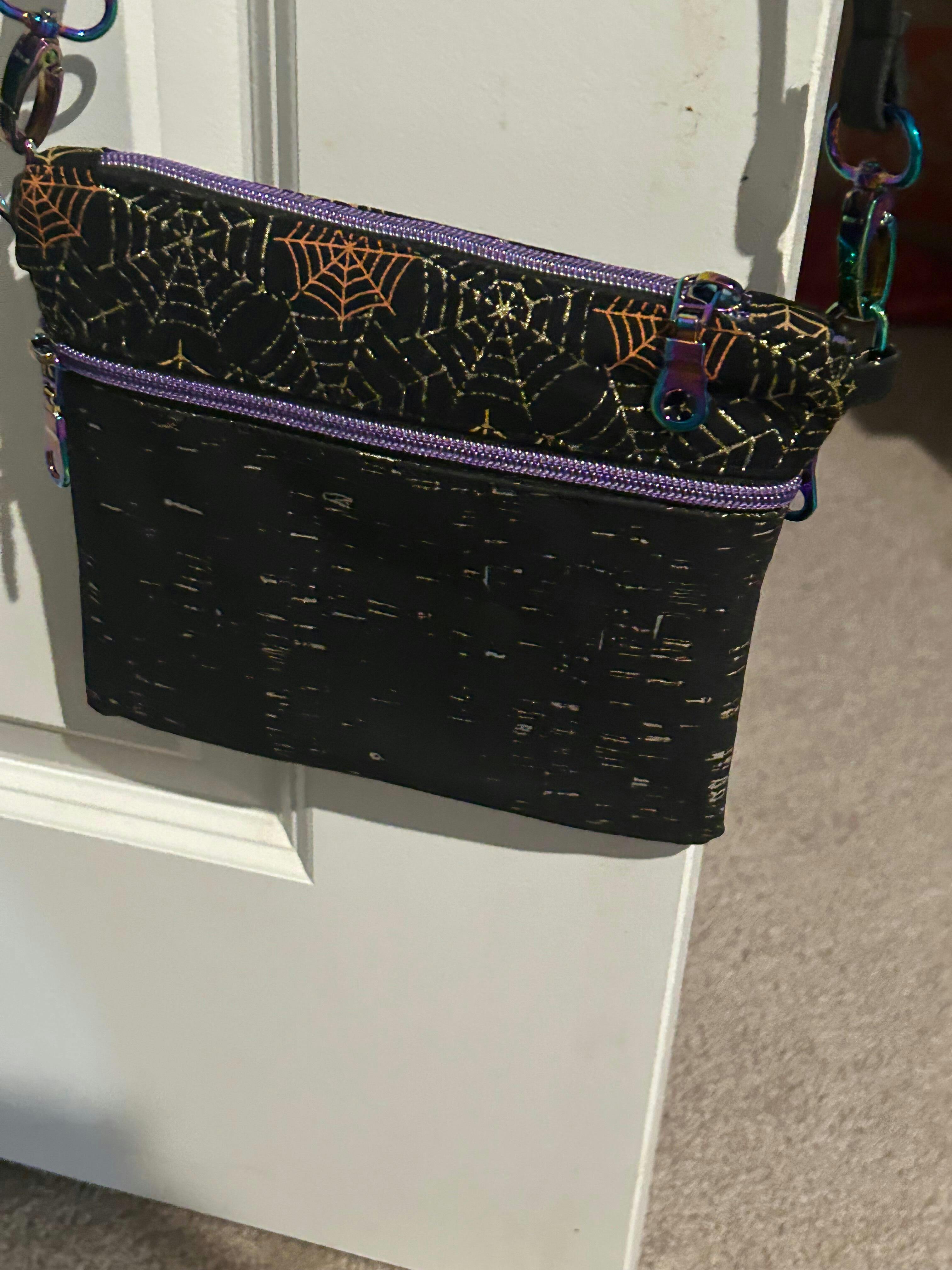 FEATURES: Adjustable crossbody strap, three exterior zipper pockets and zipper closure