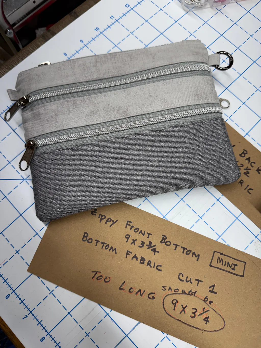 Thank you so much for your feedback! It sounds like the measurement difference you’re seeing is likely due to the seam allowance used when inserting the zipper. This should be 3/8' versus 1/4' for the rest of the bag. If a smaller or inconsistent seam allowance is taken, Piece C can appear too tall, which affects the finished height of the mini size.