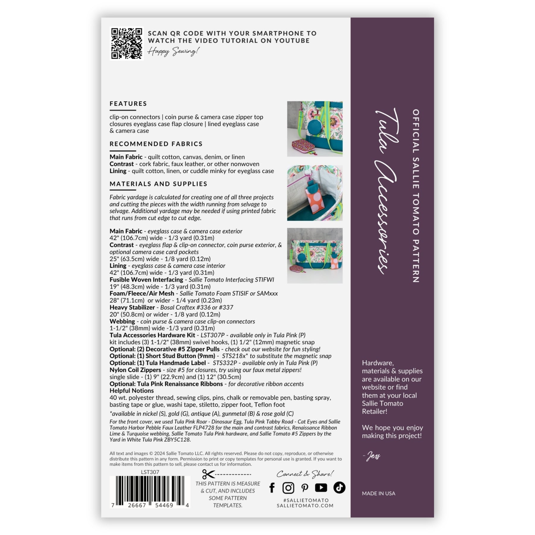Sallie Tomato provides sewing patterns, purse hardware, handbag zippers, cork fabric, and select sewing supplies for bag making.