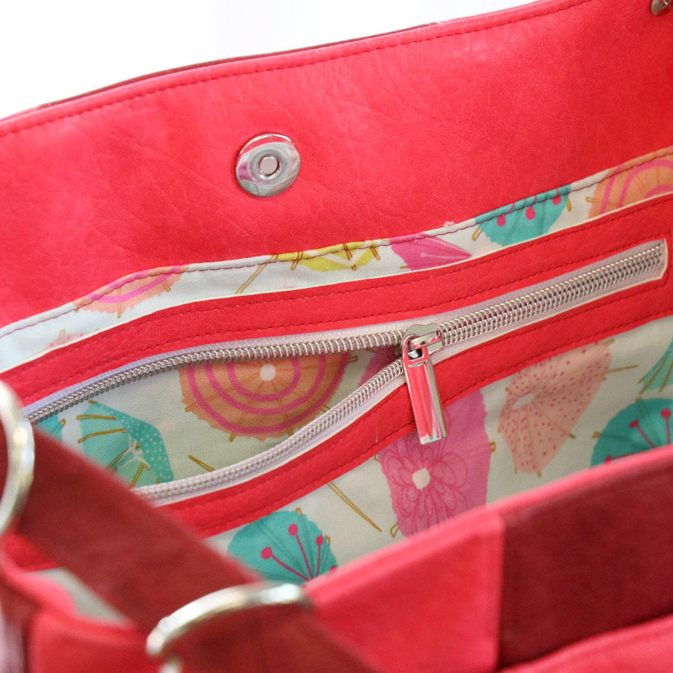 Sallie Tomato ofrece patrones de costura, herrajes para bolsos, cremalleras para bolsos, telas de corcho y artículos de costura selectos para la confección de bolsos.