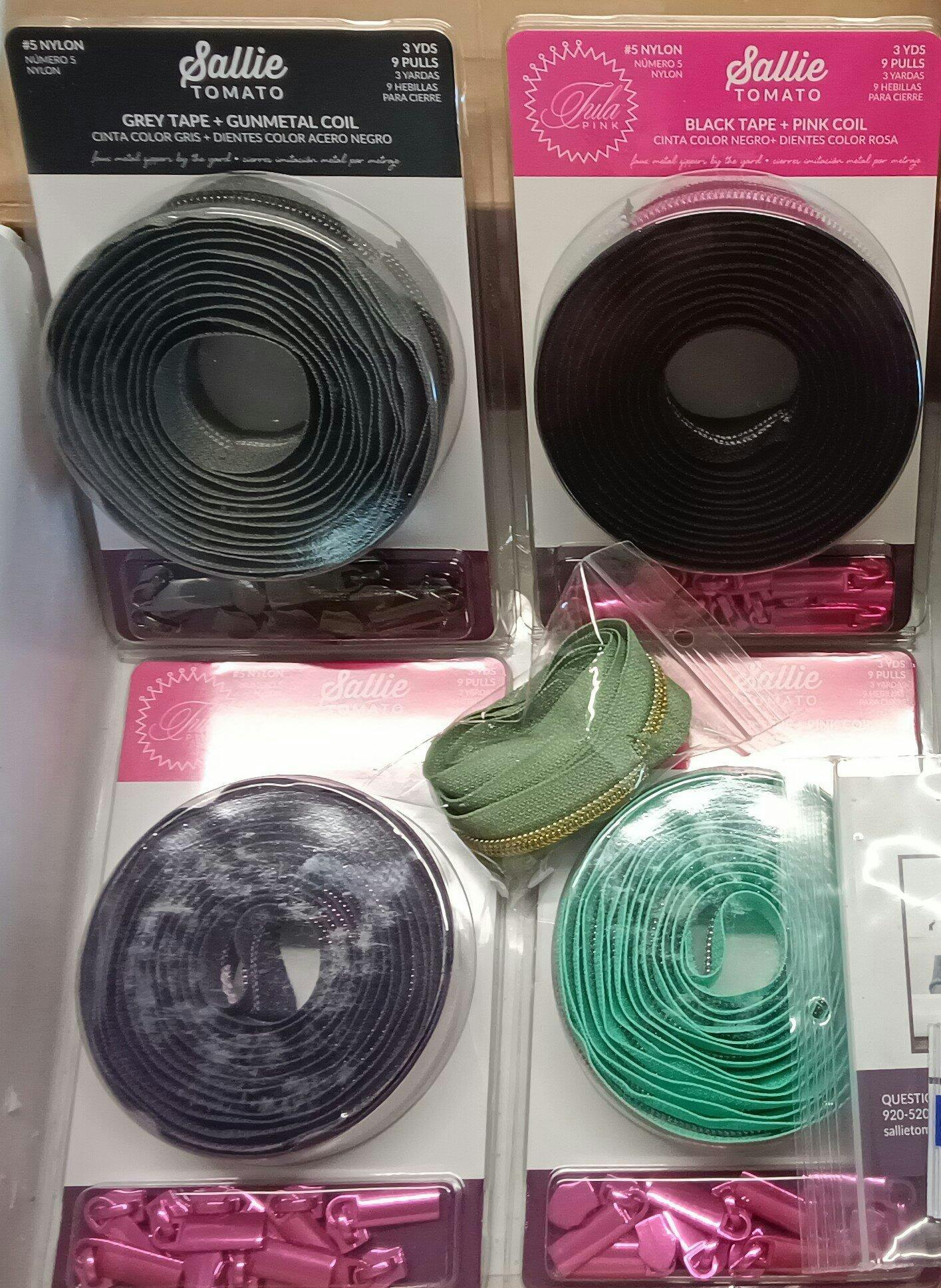 Las cremalleras Sallie Tomato se pueden comprar cortadas a medida (solo cinta de cremallera, sin tiradores) O en un paquete de 3 yardas con 9 tiradores de cremallera rectangulares. Si corresponde, asegúrese de elegir cinta de tamaño n.° 3 o n.° 5, según su preferencia.
