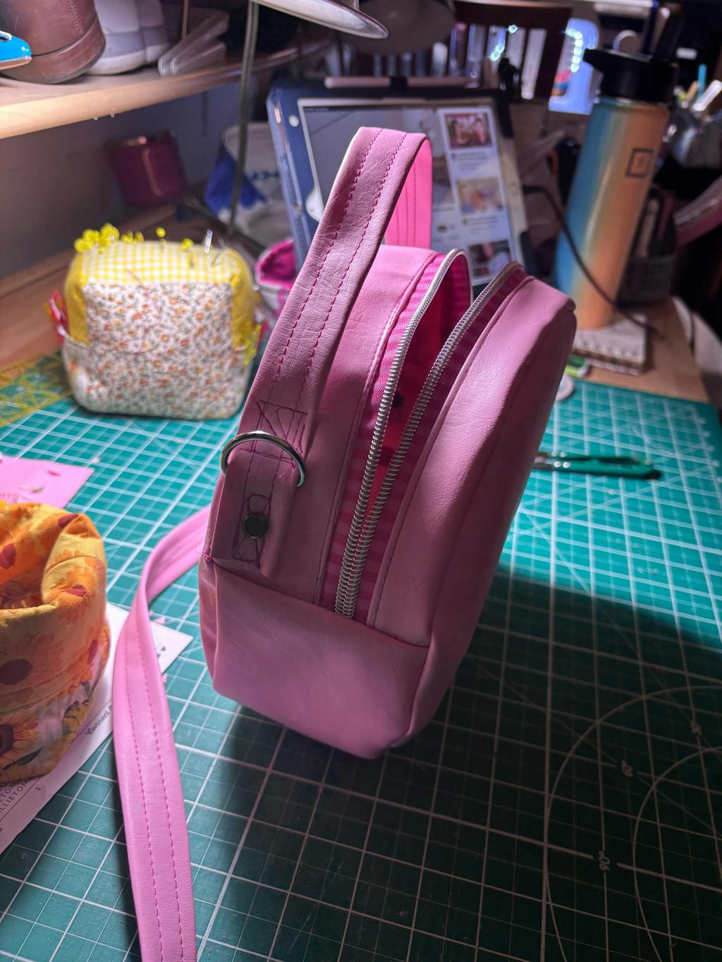 Ce sac rond est doté de nombreux détails bling-bling ! Il n'y a pas de doublure dans ce sac. Le bord intérieur est laissé brut, ce qui rend ce projet très rapide à coudre et idéal pour les débutants.