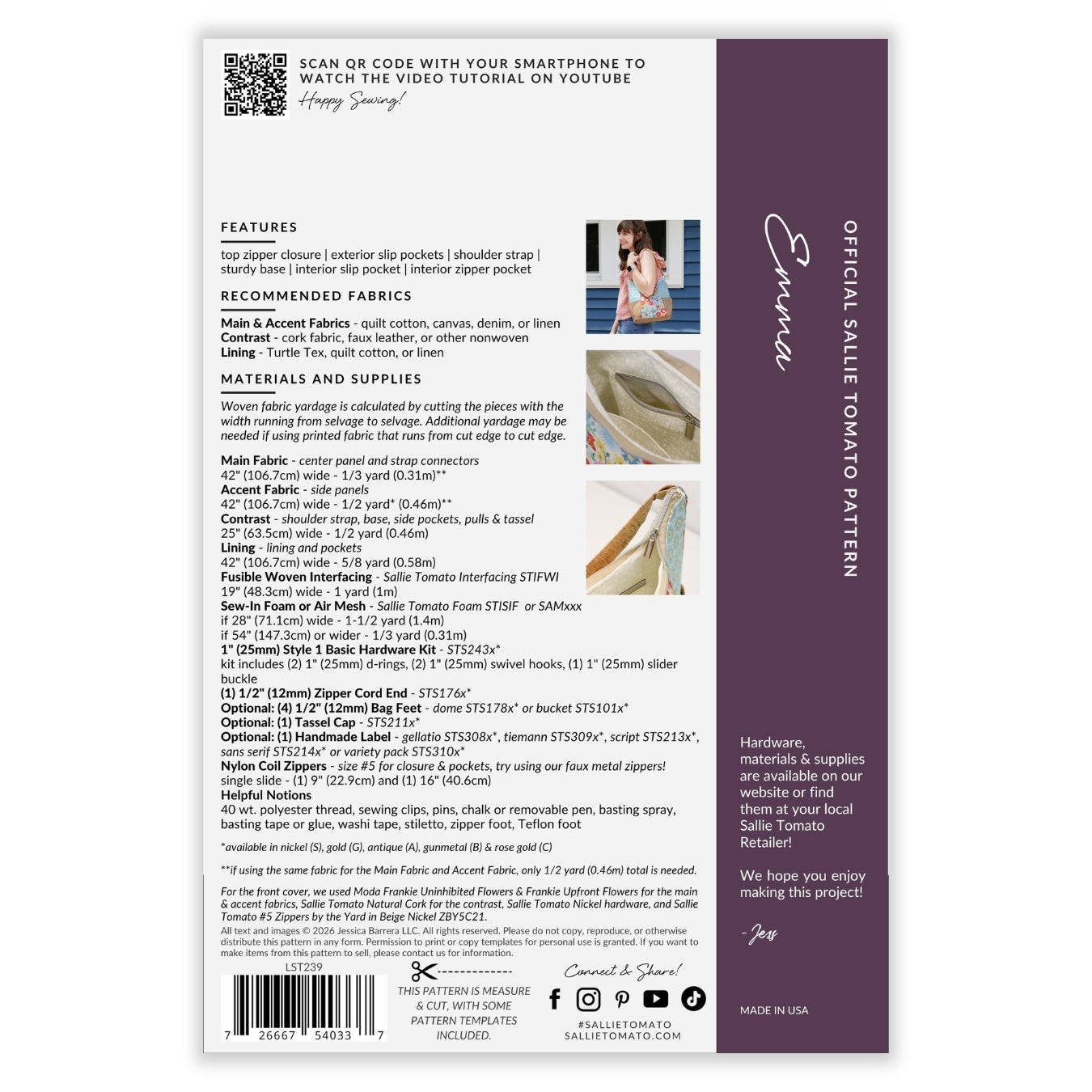 Sallie Tomato propose des patrons de couture, du matériel pour sac à main, des fermetures éclair pour sac à main, du tissu en liège et une sélection de fournitures de couture pour la fabrication de sacs.
