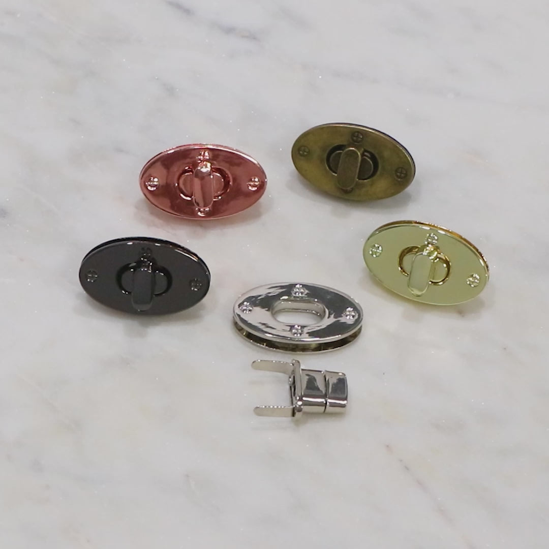 Nos serrures tournantes classiques ont un design raffiné et élégant. Ils fonctionnent comme une fermeture pour les poches, les rabats, les portefeuilles et les sacs, mais aussi comme un embellissement sophistiqué. Les verrous tournants sont faciles à ouvrir et à fermer ; insérez simplement l'unité tournante en métal dans l'ouverture de l'unité de base et tournez l'unité tournante en position verticale pour sécuriser le verrou.