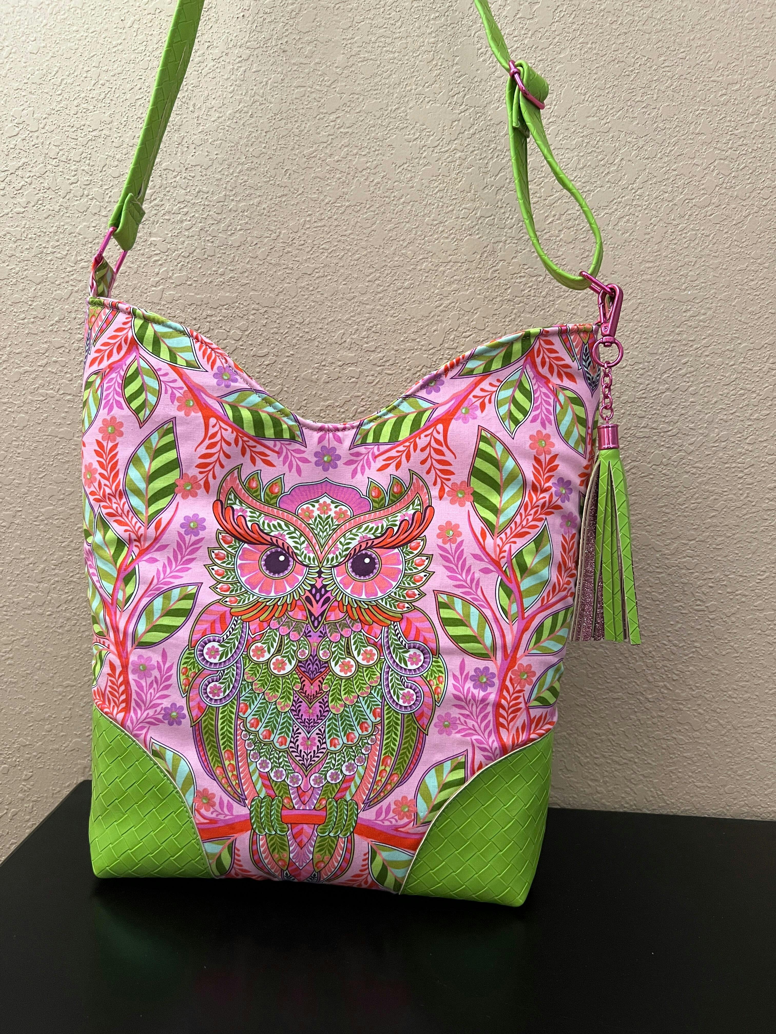 FINISHED SIZE: The finished size of the crossbody is 10" wide, 10" high, and 3" deep. The finished size of the tote is 13" wide, 13" high, and 4" deep.