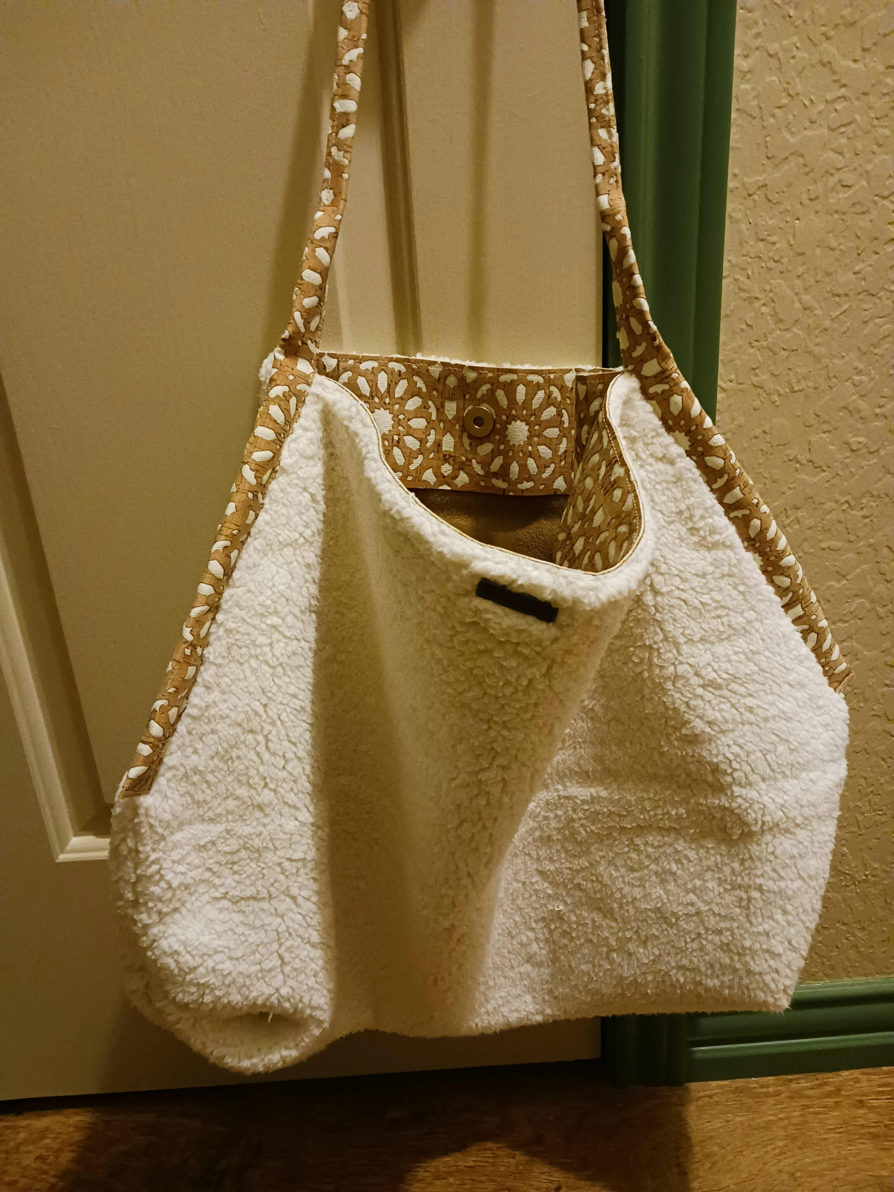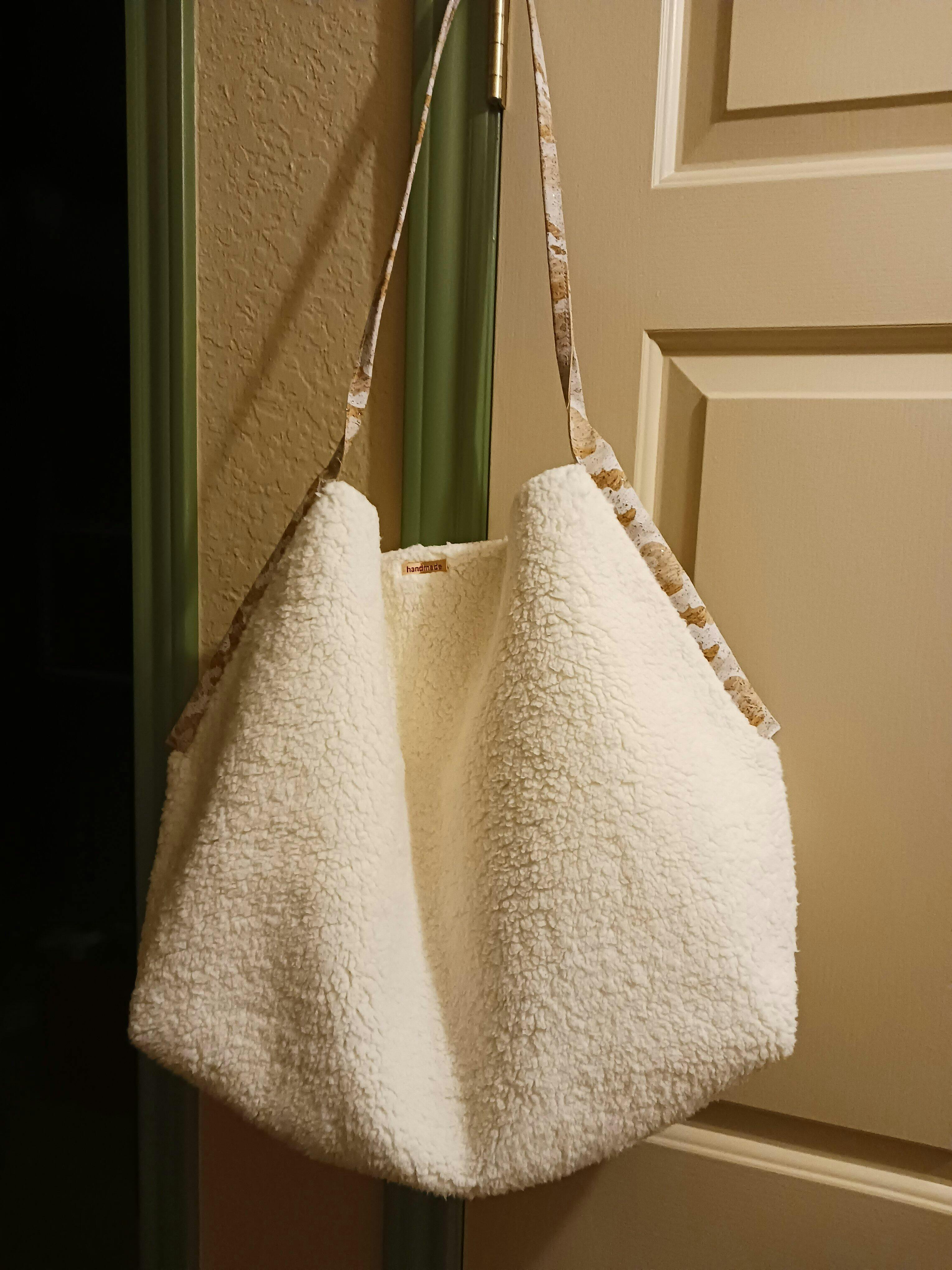 Faux fur or sherpa fabrics create a soft, luxurious look for our easy-to-sew Daria tote pattern. The name in ancient Roman means wealthy or possesses a lot; which is quite appropriate because there's plenty of room to carry a lot inside this bag!