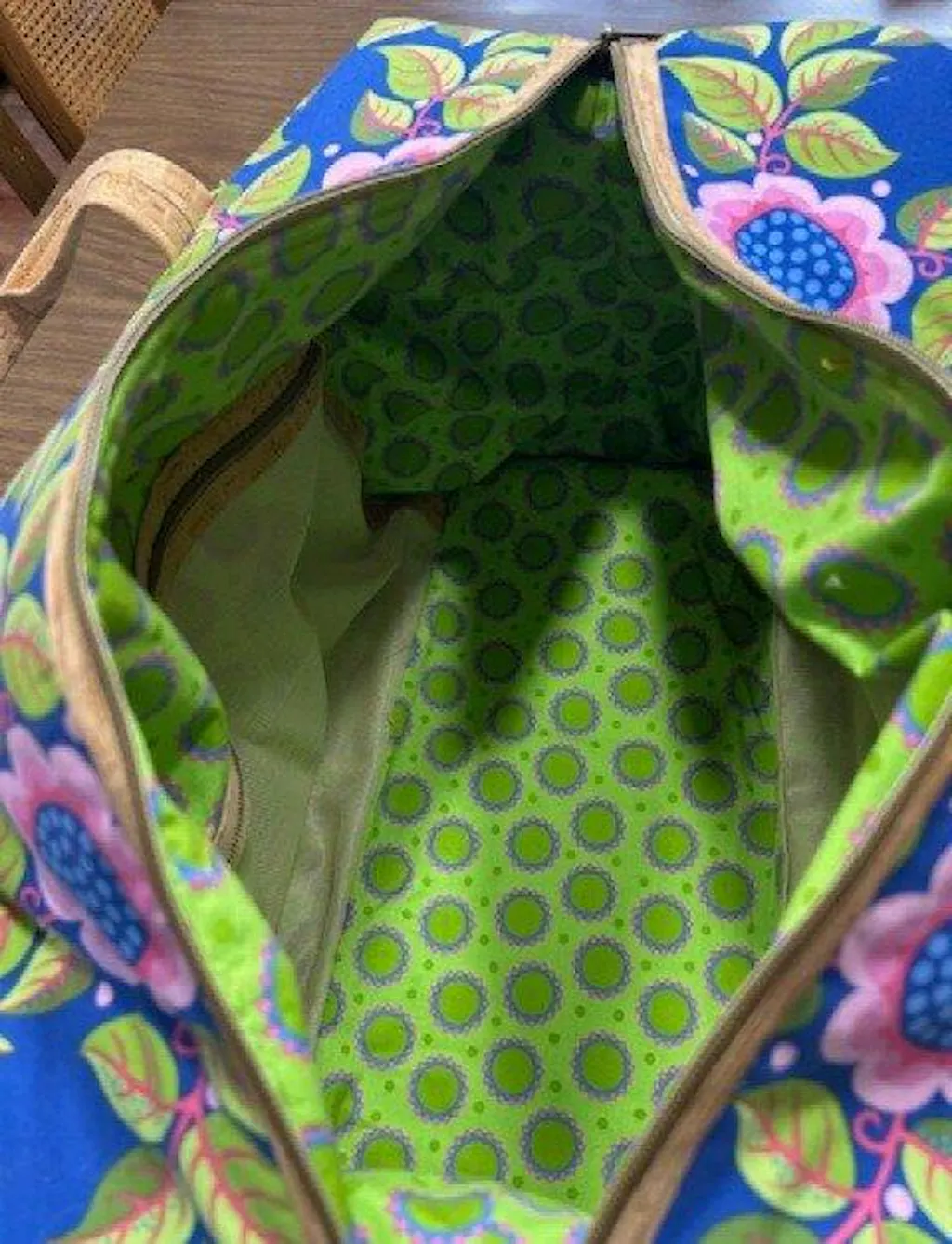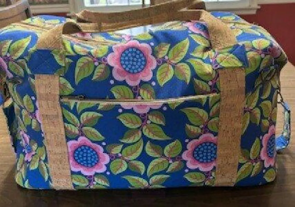 I made this for an upcoming trip, and it was an amazing as a carry on. It’s very roomy! I used water repellent nylon fabric for the outside and quilting cotton for the interior.