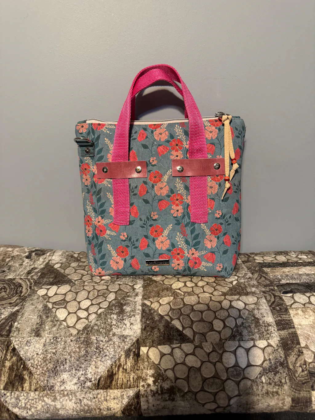 FEATURES: Zipper top closure, accented handles, interior slip pocket, interior zipper pocket, boxed bottom, optional tassel, adjustable strap from contrast fabric or Make-A-Strap webbing